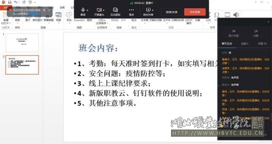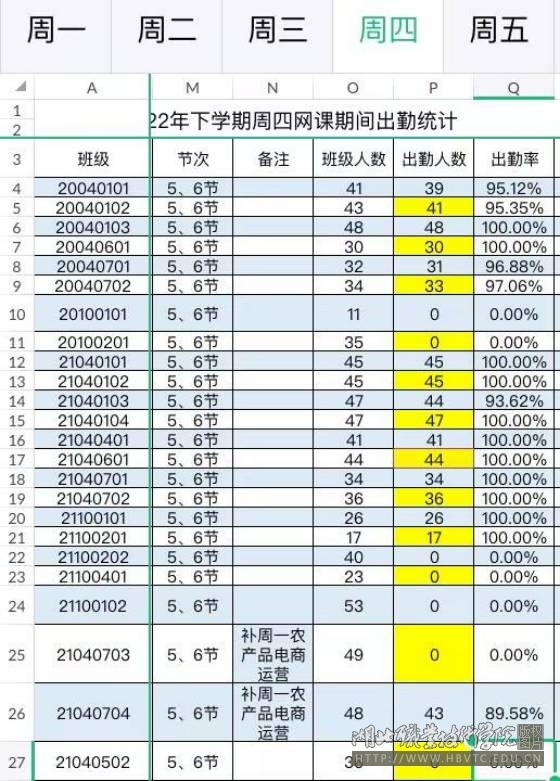 加强管理解民忧。针对广大师生担心的疫情防控期间如何开好学上好课的问题,学院根据学校防控要求,相关工作人员早谋划、早安排,及时做好教学资源的调整,教学工作由线下转为线上,确保了新学期教学工作按时开展。线上教学期间,学院院长徐斌华等领导班子成员每天带队下宿舍,监督在校生的线上教学情况,建立线上教学巡视制度,对学生线上教学出勤情况进行及时通报管理,学生出勤率基本维持在95%左右,大部分普通班的线上教学出勤率保持在100%,教学工作井然有序。完善安全管理制度,加强值班值守,确保静态管理期间学院工作不失常。