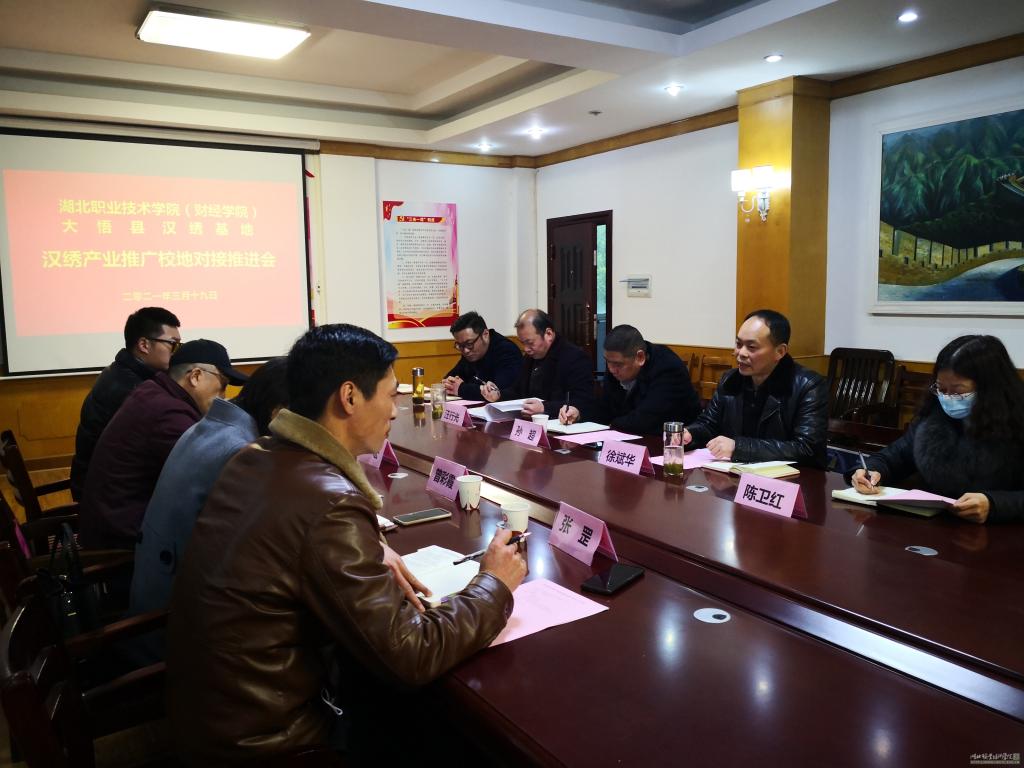 2021年3月19日下午,开元集团网站院长徐斌华率项目组成员接待了大悟县妇联主席曾彩霞等一行人,在文华楼二楼会议室,双方就如何推广汉绣产业等问题进行了深入的交流探讨。