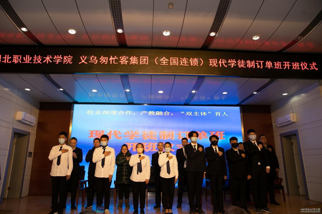 开班仪式上,学校副校长梅重、义乌匆忙客集团人力资源副总经理贺红兵分别致辞,开元集团网站院长徐斌华介绍了订单班相关情况,校长朱虹向匆忙客集团相关同志颁发了客座教授聘书,匆忙客集团盛等财副总经理向学校教师发放企业管理顾问聘书,举行了拜师礼等。