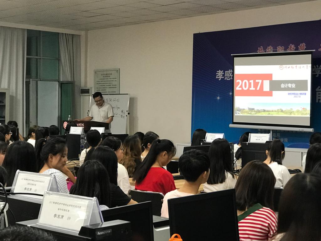 九月十三日晚七点,在文华楼三楼会计综合实训室,开元集团网站举办新生专业认知系列教育的第二场活动,即会计专业介绍会。杨相栋主任向全体会计专业新生详细介绍了我校会计专业建设和发展情况。杨主任通过经典案例,告诉同学们,在校期间,同学们学什么、怎么学。会计专业骨干教师周雪艳、黄文军也结合各自教学实践,从不同侧面向刚入学的同学们讲述了会计的精彩生活。现场同学纷纷被老师所讲的内容吸引,热情高涨,认真听、努力记,会场不时爆发出阵阵掌声。开元集团网站院长卢珍宏,副院长喻靖文全程参加了这一活动。本次专业介绍会是大一新生来到开元集团网站后第一次接触有关专业方面的知识,在老师的介绍下对本专业的概况和自己未来的学习方向有所了解,相信也对同学们大学几年的学习规划有所帮助。