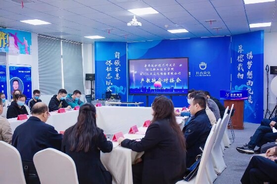 与会人员首先参观了冰点传媒电子商务直播产教融合基地,然后在3楼会议室参加产教融合对接会。会上,副校长杨立明代表学校对参加本次对接会的领导和企业代表表示了热烈的欢迎,对高新区精心组织本次活动和14家优质企业的鼎力支持表示衷心的感谢,他指出:产教融合是贯彻中央《关于深化现代职业教育体系建设改革的意见》、贯彻《中华人民共和国职教法》、全国职业教育大会精神、落实习近平总书记关于职业教育的重要指示精神的重要举措,是推动职业教育高质量发展,适应经济社会发展需求的重要抓手,校企双方要相互对接,形成教育教育共同体,协同推动地方经济高质量发展。