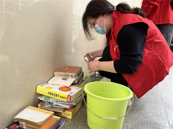 活动中,身穿红马甲的志愿者们首先化身“书农”,将图书一摞一摞地抱进阳光底下,一本一本小心翼翼的擦拭干净,分门别类摆放整齐。随后大家纷纷就自己感兴趣的图书相互交流心得、分享体会,氛围十分融洽。
