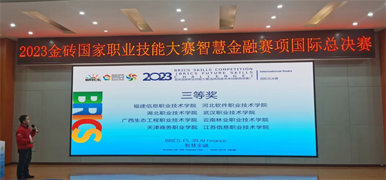 近日,2023金砖国家职业技能大赛智慧金融赛项国际总决赛落下帷幕,经过激烈角逐,财经与旅游学院参赛教师张星月(指导专家徐斌华)荣获三等奖。