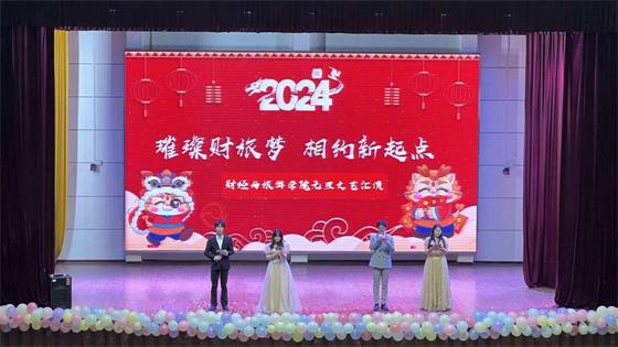 旧岁已越,钟响玉兔衔冬去;新元肇启,祥龙昂首唤春归。为欢庆辰龙年的到来,丰富同学们的精神文化生活,展示我院师生团结创新、锐意进取、蓬勃向上的精神风貌,增强师生对学院的归属感和幸福感,2024年1月2日晚上7点,财经与旅游学院在西区文昌礼堂隆重举办了以“璀璨财旅梦相约新起点”为主题的2024年元旦文艺汇演。学校党委副书记王益贤,党委委员、副校长梅重,湖北冰点传播有限公司新媒体电商中心总经理徐钦、武汉新世界酒店人力与文化总监黄隆,学校相关职能部门及兄弟学院领导也应邀参加了本次汇演。