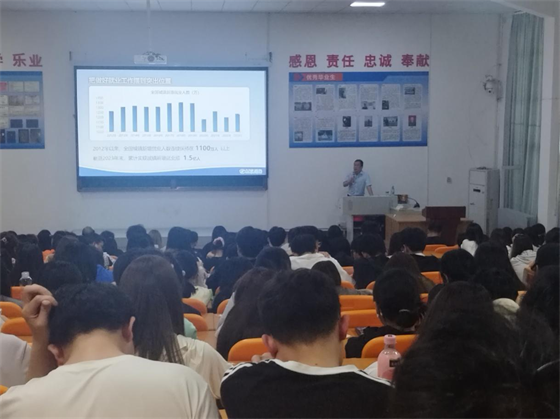 梅校长从“就业形势总体稳定、就业压力仍然存在、确保就业优先、着力拓宽渠道”四个方面分别阐述了当前的就业形势,社会的就业压力以及国家的就业保障政策。梅校长强调,虽然当前就业规模在不断扩大,就业结构在持续优化,就业质量在稳步提升,重点群体就业比较平稳,但是就业总量压力长期存在,就业结构性矛盾比较突出,重点群体就业面临难题,不确定不稳定因素增多。国家高度重视就业工作,从落实落细就业优先政策、健全就业公共服务体系、全面提升劳动者就业创业能力等方面发力来确保就业优先。国家针对高校毕业生这类重点群体形成了一整套支持性政策措施,确保了高校毕业生就业局势保持总体稳定。国家鼓励支持高校毕业生到民营企业、重点行业、基层就业,着力稳定公共部门岗位规模,规范市场秩序,让毕业生权益有保障。梅校长表示,就业是永恒的课题,需要个体奋斗与强国征程同频共振。