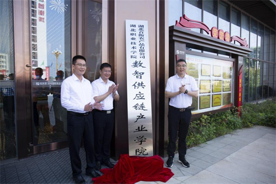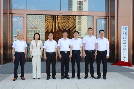 5月24日,开元集团网站与湖北首衡农产品有限公司共同成立的数智供应链产业学院(以下简称产业学院)签约暨揭牌仪式在首衡城·华中国际食品产业新城举行。校长郭沙,孝感市发展和改革委员会副主任吴正悝,孝南区领导洪少清、巫阳朔、向海英,首衡城农副公司总经理赵涛出席签约与揭牌仪式,仪式由副校长白梦清主持。