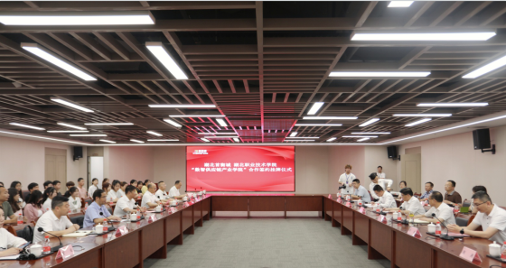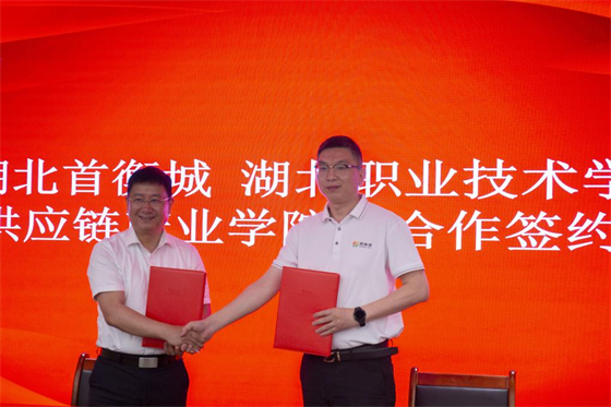 财经与旅游学院院长徐斌华介绍了校企合作产业学院建设背景和建设情况。表示加强与首衡城农商旅产业链对接,组建数智供应链专业群,建设“厂中校”,构建数智供应链产业学院,把教育链建在产业链、创新链上,双向赋能做好产教融合关键一招,纵深推进市域产教联合体建设,全力助推孝感新质生产力的培养、发展、壮大。