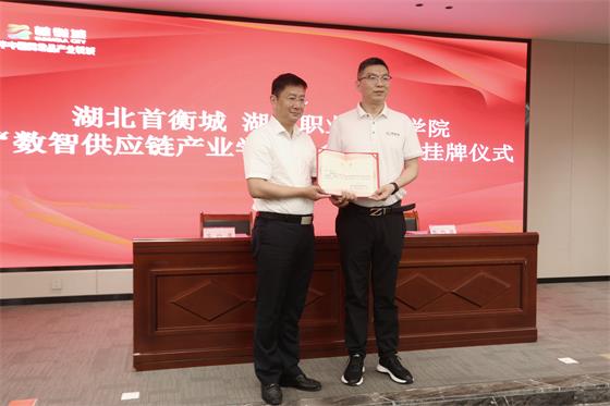 湖北首衡城农副公司总经理赵涛讲话。他表示,通过校企合作和“数智供应链产业学院”的建设,更好地发挥企业优势,为学院和广大同学提供一个非常良好的学习和实践平台。大力推进校企合作战略,将进一步促进产业升级、加快人才资源结构调整。产业学院将人才培养、教师专业发展、学生实训实习、创新创业、企业服务科技创新功能有机结合,促进产教融合、科教融汇,将产业学院打造成为集产、学、研、转、创、用于一体,互补、互动、多赢的实体性人才培养新平台。