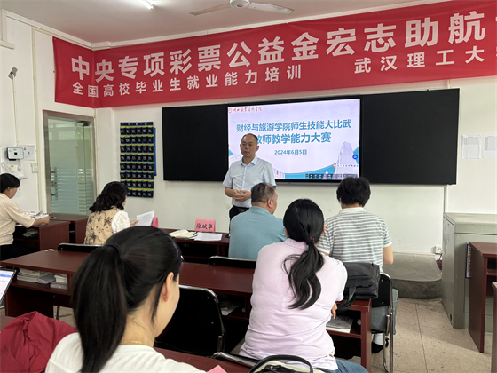 为充分发挥比赛的示范引领作用,促进“能说会做善导”的“双师型”教师成长,6月5日下午,财经与旅游学院举行了教师教学能力大赛师生技能大比武活动。学院要求50岁以下教师全覆盖参加,总共6个团队,24名教师参加比赛。