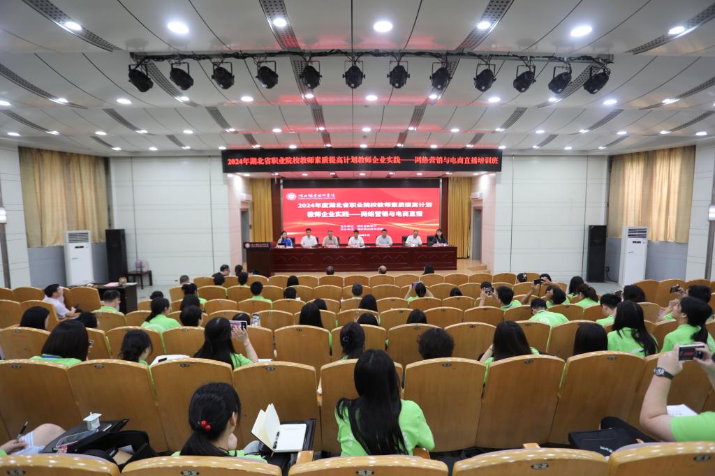 7月16日上午,由湖北省教育厅主办、我校承办的2024年湖北省职业院校教师素质提高计划教师企业实践(网络营销与电商直播)培训班在学校西区文博馆学术报告厅举行开班仪式。学校党委副书记、校长郭沙、孝感市教育局党组成员、副局长丁萌、广州市福思特科技有限公司常务副总麦全发、学校党委委员、副校长杨立明、财经与旅游学院院长徐斌华、继续教育学院院长丁浙英、湖北冰点文化传播有限公司总经理董俊出席。来自全国职院校学员60人及财经与旅游学院教师代表参加了开班仪式,开班仪式由副校长杨立明主持。