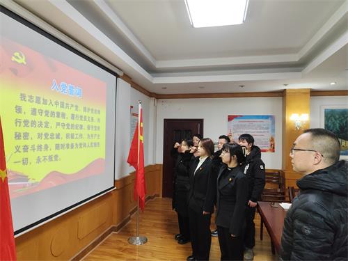 学工支部书记陈卫红首先介绍了预备党员的基本情况;在奏唱《国际歌》后,学院组织员黄曙光带领预备党员及学工支部全体党员向党旗庄严宣誓。