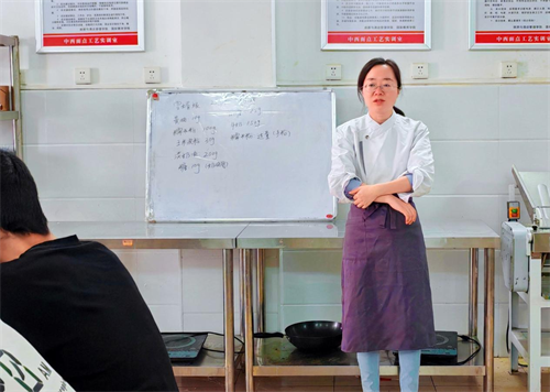 活动现场,同学们围坐在长桌旁,桌上整齐摆放着糯米粉、玉米淀粉、黄油、淡奶油、打蛋器等各式各样的制作材料和烘焙工具。“今天要制作的西点是雪媚娘”,戴老师一边热情讲解,一边演示步骤。同学们听得无比认真,不禁跃跃欲试。
