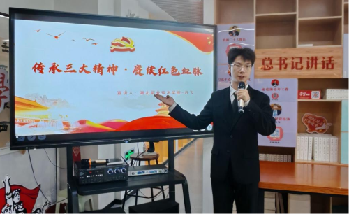 随后,志愿服务队成员许飞围绕“大别山精神、抗洪精神、抗疫精神”展开宣讲,讲述革命时期大别山军民“二十八年红旗不倒”的坚守,抗洪时万众一心战洪魔的拼搏,抗疫中举国同心护生命的担当,让红色精神直抵人心。