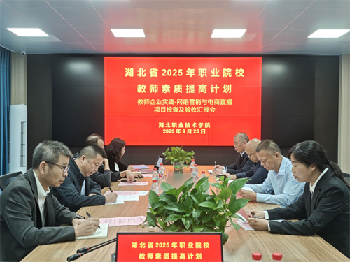 9月24日—9月25日,由武汉交通职业学院副校长镇伟、武汉职业技术大学副处长宋会林、咸宁职业技术学院继续教育学院院长吴义三、湖北省国培项目办杨瑾组成的验收专家组,对我校承办的湖北省2025年职业院校教师素质提高计划教师企业实践—网络营销与电商直播(国培)项目的实施成效、组织管理、资金使用等方面进行全面、严谨的验收评估。学校党委委员,副校长杨立明出席会议并致辞。会议由财经与旅游学院曹艳芬主持。