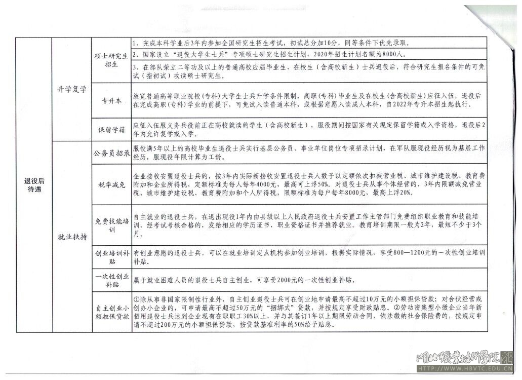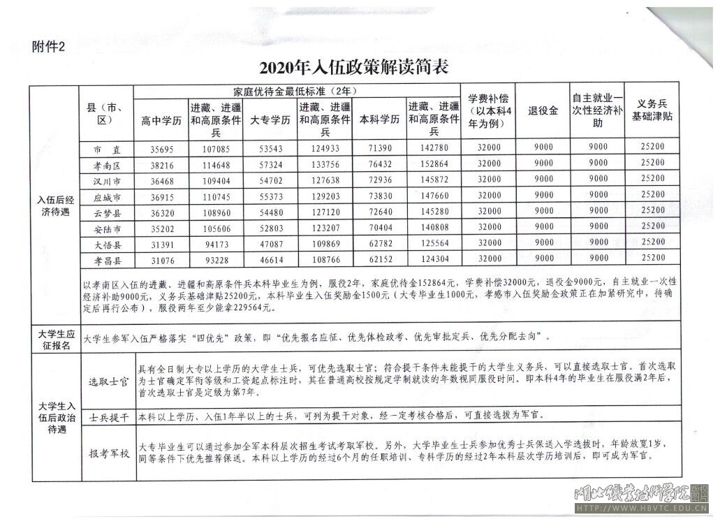 入伍政策解读简表