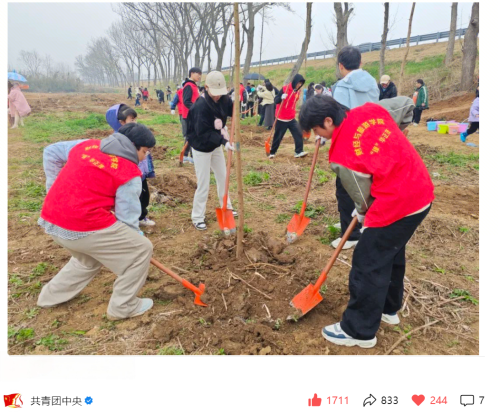 3月9日,财旅“锋”华正茂志愿服务队积极响应团市委号召,前往市郊参加义务植树活动。队员们挥锹铲土、扶苗培土、提水浇灌,干劲十足,用实际行动为城市增添一抹新绿。他们青春洋溢的身影和认真负责的态度,不仅展现了当代大学生的精神风貌,更赢得了一致好评。此次活动还获得了共青团中央官方微信公众号的图片报道,成为财旅学子践行生态文明建设的生动写照。